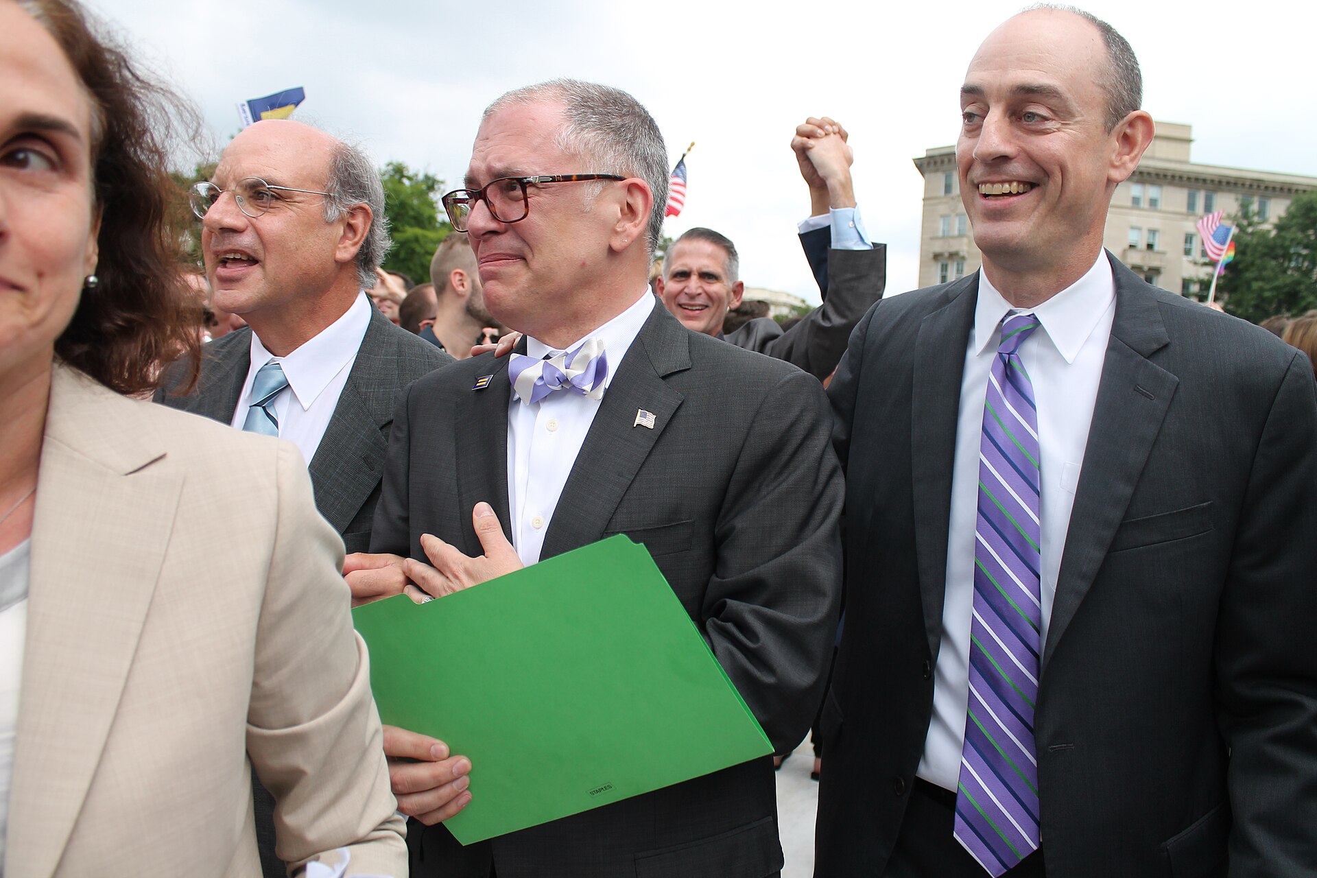 In a consolidation of six lower court lawsuits known as Obergefell v. Hodges, James Obergefell, who was legally married in Maryland to his spouse, John Arthur, who was terminally ill with ALS, sued the Ohio Registrar for not allowing him to be listed as his surviving spouse on his death certificate.